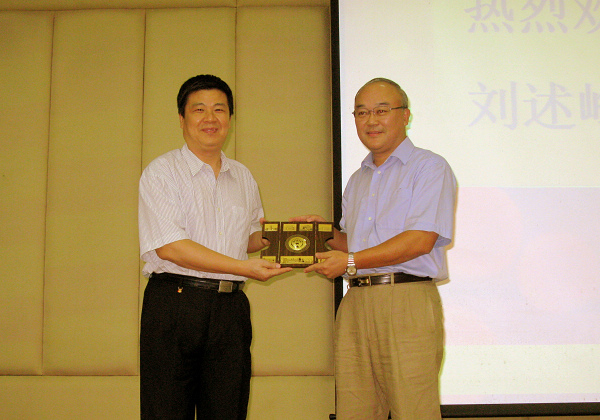 刘述峰校友参加校友讲坛担任主讲嘉宾与学校陈德萍副校长合影