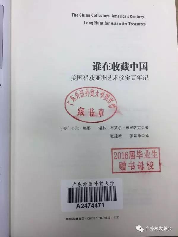 爱心接力,只是一本书的距离。师兄师姐们捐赠的图书,也会以特别的方式在图书馆存在。我们在每本书籍的内页,留下了2016届毕业生的专属印迹。这不是一块普通的红章,它蕴含着广外人浓浓的情意。雁过留声,书香传承。