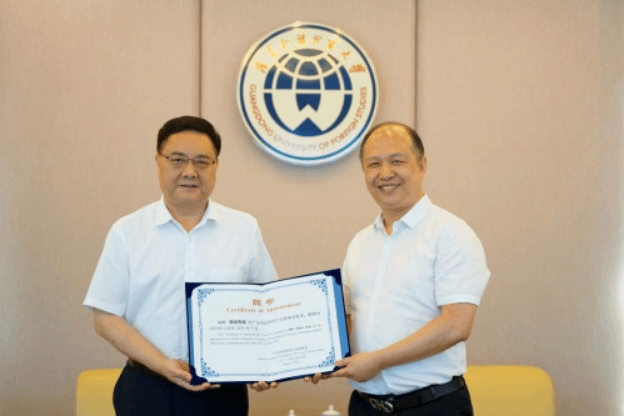 在陈俊董事长领导下的广州大湾教育科技集团有限公司,深耕教育事业二十余年,公司始终热心教育公益事业,是一家具有浓厚教育情怀和极强社会责任感的优秀企业。石佑启书记为陈俊董事长发展教育事业的使命感和责任感“点赞”,并代表广东外语外贸大学董事会向陈俊颁发了校董聘书。