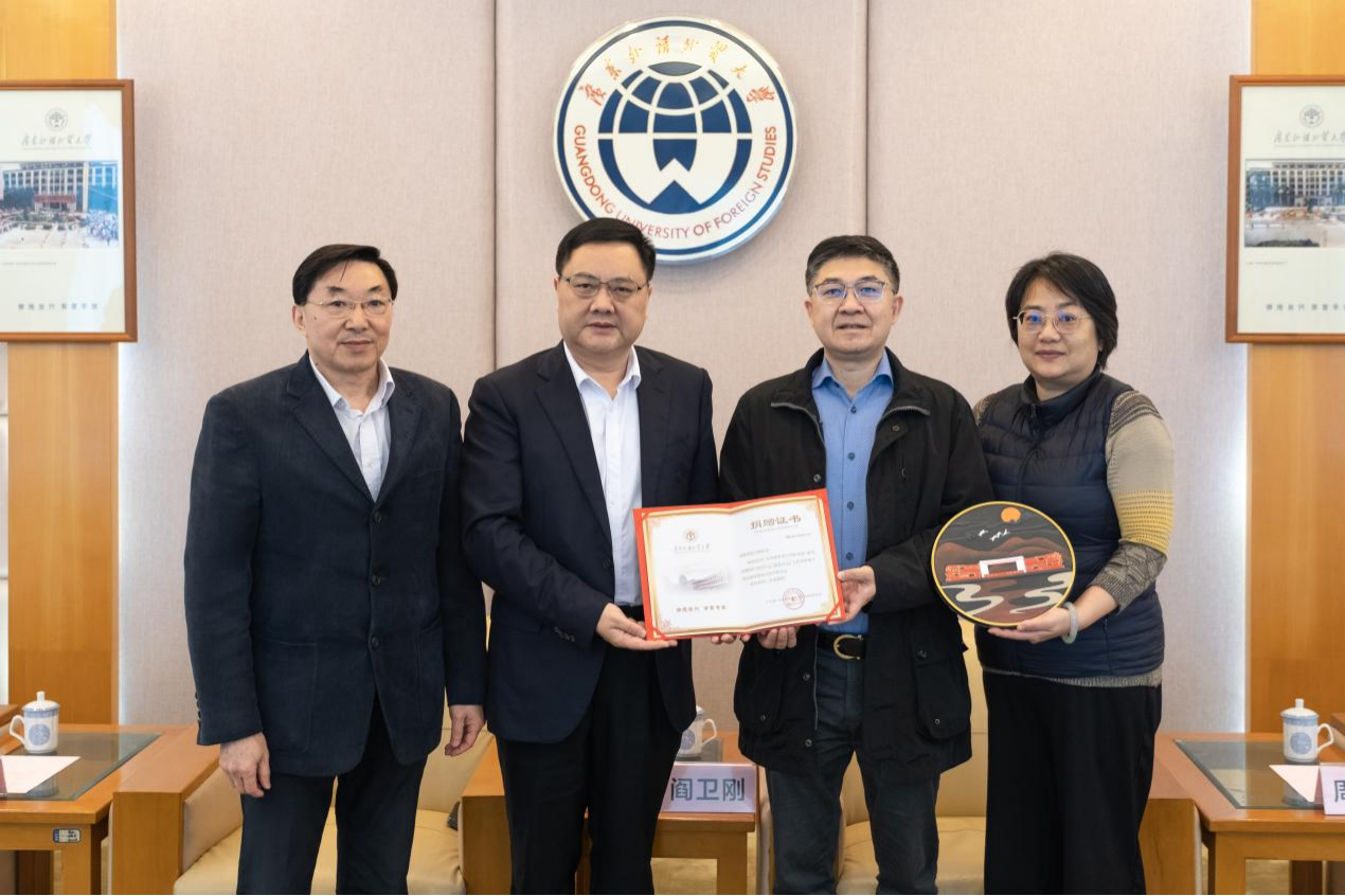 3月28日下午,纽约校友会名誉会长、84级阎卫刚校友向母校捐赠50万元。捐赠仪式在白云山校区行政楼二楼迎宾厅举行,校党委书记石佑启教授代表学校接受捐赠。此次捐赠中,30万元用于对新第一教学楼南楼306室(70座智慧课室)进行冠名捐赠,20万元用于设立“佳丰奖学金”对广外优秀学子进行激励与支持。阎卫刚校友夫人周蔚慧、深圳校友会会长许泽民、香港校友会会长梁成锦等见证捐赠仪式。校党委副书记李云明,党办、校办主任谢伟光,国际交流合作部部长周鹏,校友事务与合作发展处处长肖锋、副处长刘庆丹等相关人员出席了捐赠仪式。