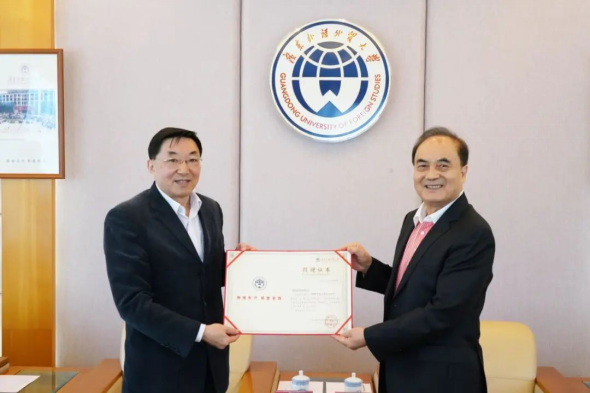 3月2日上午,72级英语校友刘展图向母校捐赠奥运火炬的捐赠仪式在广外白云山校区行政楼二楼迎宾厅举行。校党委副书记李云明代表学校接受捐赠。03级法学校友谢楠、党办、校办主任谢伟光、图书馆党委书记陈红霞、校友事务与合作发展处处长肖锋等相关人员出席了捐赠仪式。