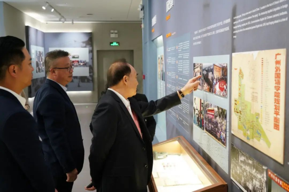 在参观学校校史馆时,刘展图校友动情的谈起在广外求学的日子,学校老旧照片的一花一木都触动着他的心,他非常怀念青葱岁月的大学时光,那些学习和生活的场景仿佛昨日重现般历历在目。刘展图校友离开校园踏入社会后,心中也一直牵挂着母校,并身体力行的为母校发展贡献自己的力量。