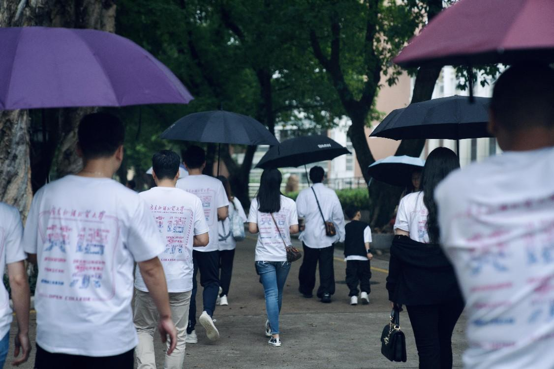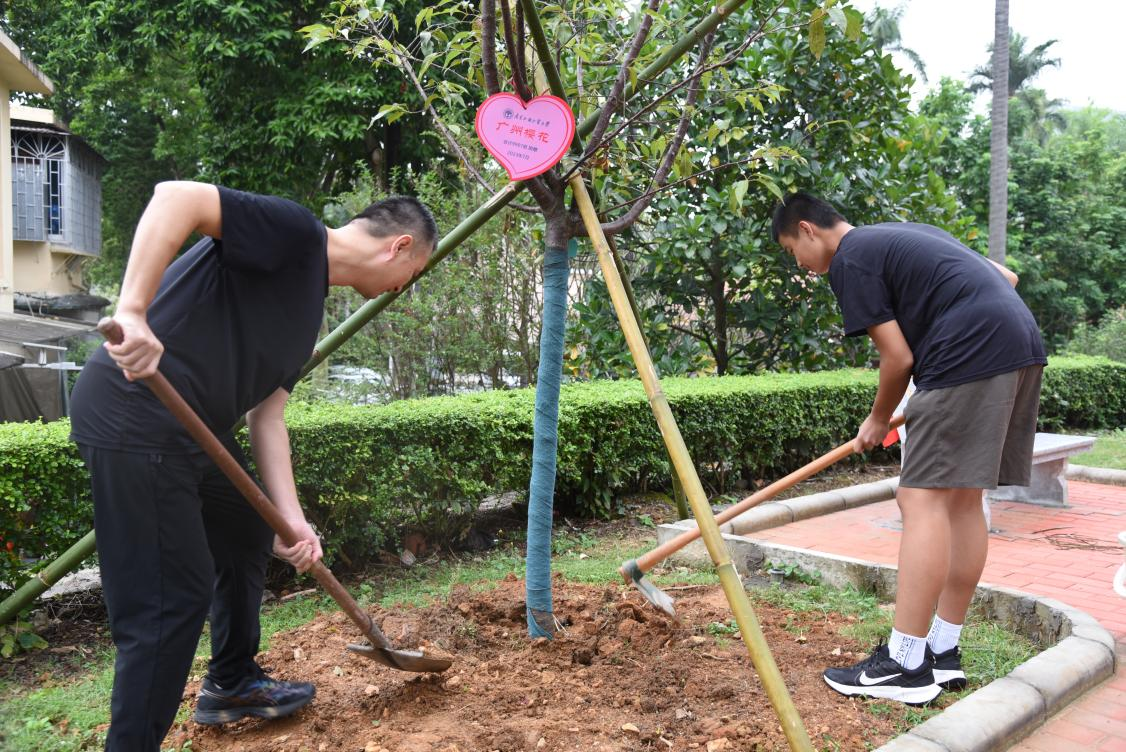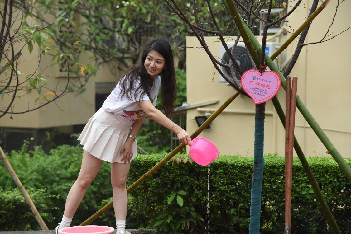 今日绿地新芽微雨,来年粉树盛花飘香。清雅园旁,樱花树下,根系广外,情谊永存。校友为新植的广州樱花培土浇水,期间虽有淅淅沥沥的雨水湿润了头发,但浇不灭感恩母校的炽热之心。