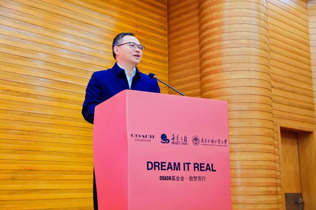 刘建达向与会嘉宾和同学致以热烈欢迎和诚挚问候,表示学校的蓬勃发展和学生的健康成长离不开社会力量的帮助,感谢COACH基金会和中国青少年发展基金会对广外教育事业的大力支持。