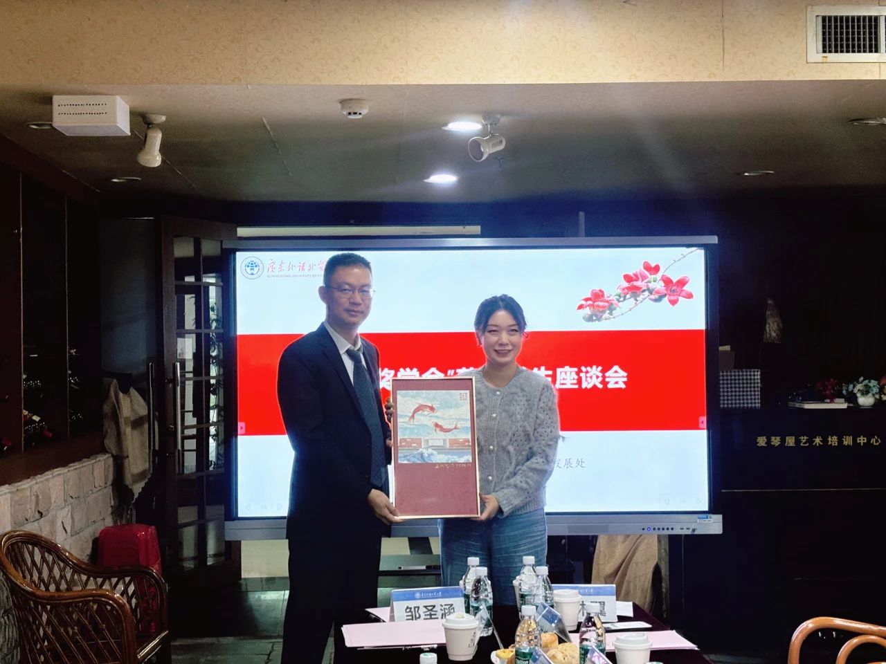 学生工作部五级组织员商杰强、校友事务与合作发展处副处长(主持工作)刘庆丹、学生工作部副部长赵观音及相关工作人员、获奖学生等参与座谈。