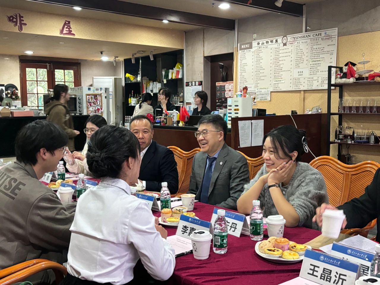 12月12日下午,在云山咖啡屋,我校“佳丰奖学金”捐赠人、84级企管校友阎卫刚与获奖学生举行座谈会。